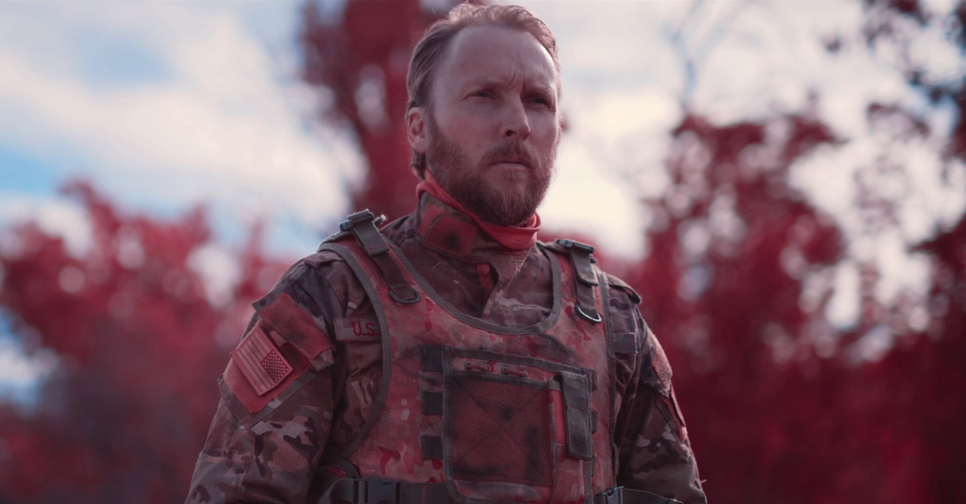 Picture this: you have a scintillating discussion on hand about a cruel subject that permeates our world today, and surely one that will continue to be discussed for centuries to come. And Joshua Close’s Slinger gives an endearing performance, one that showcases his weight after his work in Killers of the Flower Moon, Wayward, and Monica. However, he exists as a vessel to foster Davidman’s vision about the impact of PTSD and masculinity in our world. There’s no other conflict we can hook onto to keep engagement, other than glimpses of turmoil with his son and other family members/friends. Some scarce moments of reflection do keep the feature afloat, such as his obsessive dismantling and refitting of his firearm or his interactions with Emmett (Jamir Vega). Still, it doesn’t probe further into what he needs to resolve to become a better person or how to learn from this.